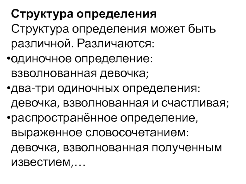распространённое определение, выраженное словосочетанием: девочка, взволнованная полученным известием,…