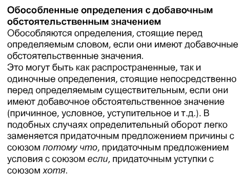 Слайд 13Обособленные определения с добавочным обстоятельственным значением