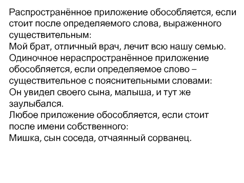 Слайд 18Распространённое приложение обособляется, если стоит после определяемого слова, выраженного существительным: