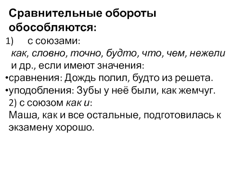 сравнительные обороты с союзами: как, будто, точно, словно и др.?