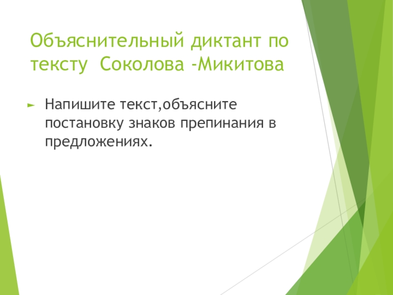 Слайд 8Объяснительный диктант по тексту Соколова -Микитова
