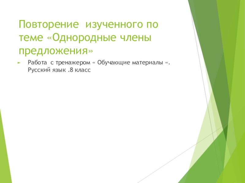 Повторение изученного по теме «Однородные члены предложения»Работа с тренажером « Обучающие материалы «.Русский язык .8 класс
