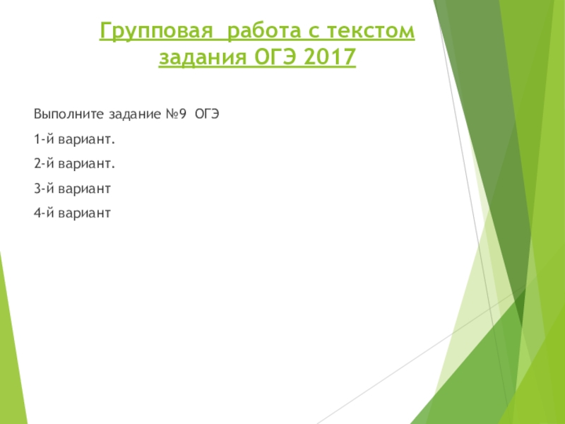 Групповая работа с текстом  задания ОГЭ 2017  Выполните задание №9 ОГЭ 1-й вариант. 2-й вариант.3-й