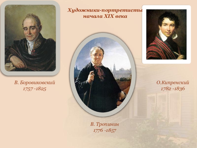 что в ней помещен материал только о трех художниках начала 19 века: О.А.Кипренском, В.А.Тропинине, В.Л.Боровиковском. Но в главе упоминается еще один портрет, созданный А.П.Брюлловым.