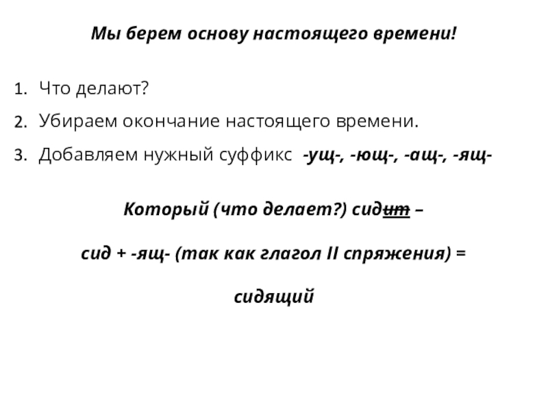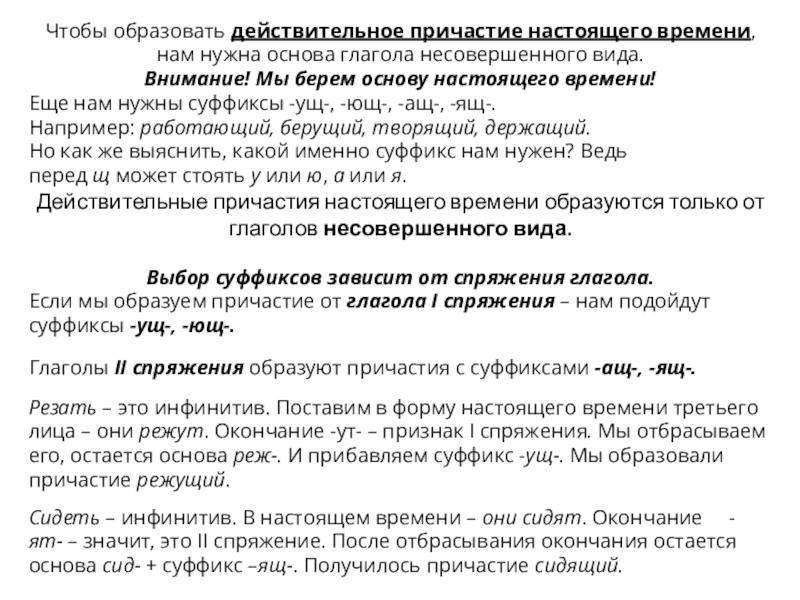 Еще нам нужны суффиксы -ущ-, -ющ-, -ащ-, -ящ-.