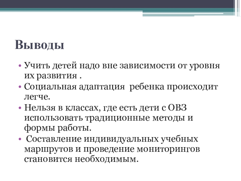 Нельзя в классах, где есть дети с ОВЗ использовать традиционные методы и формы работы.