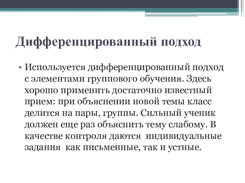 Используется дифференцированный подход с элементами группового обучения. Здесь хорошо