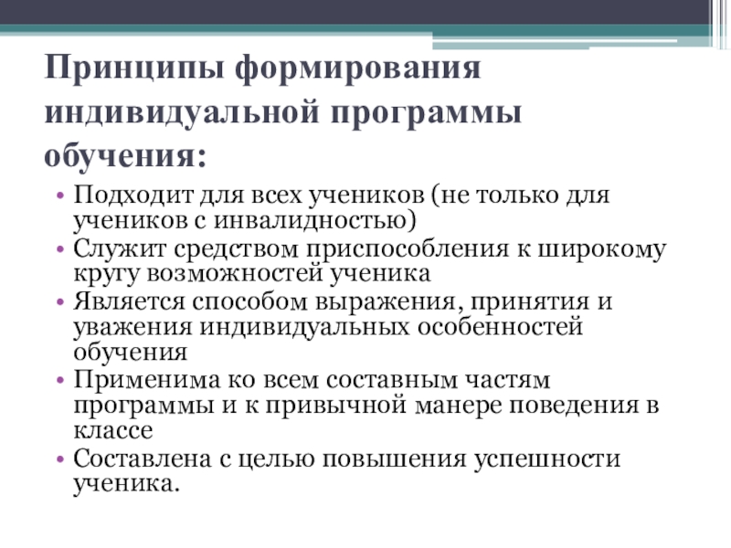 Слайд 6Принципы формирования индивидуальной программы обучения: