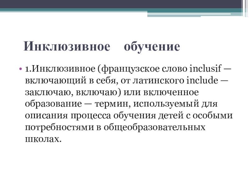 от латинского include — заключаю, включаю) или включенное образование — термин, используемый для описания процесса обучения детей с особыми потребностями в общеобразовательных школах.