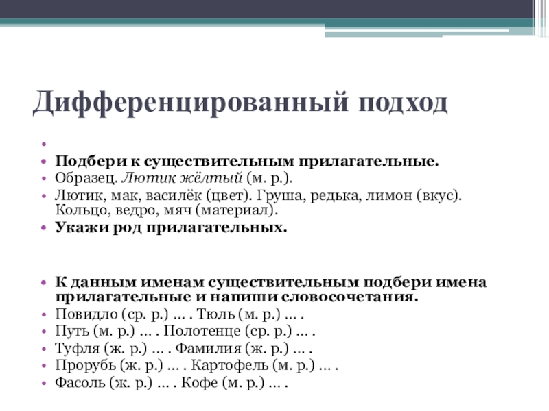 Повидло (ср. р.) … . Тюль (м. р.) … .