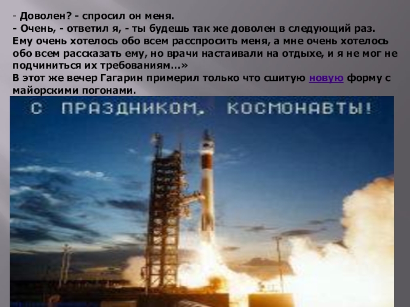 В этот же вечер Гагарин примерил только что сшитую новую форму с майорскими погонами.
