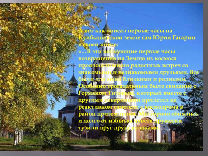Слайд 22А вот как описал первые часы на Куйбышевской земле сам Юрий
