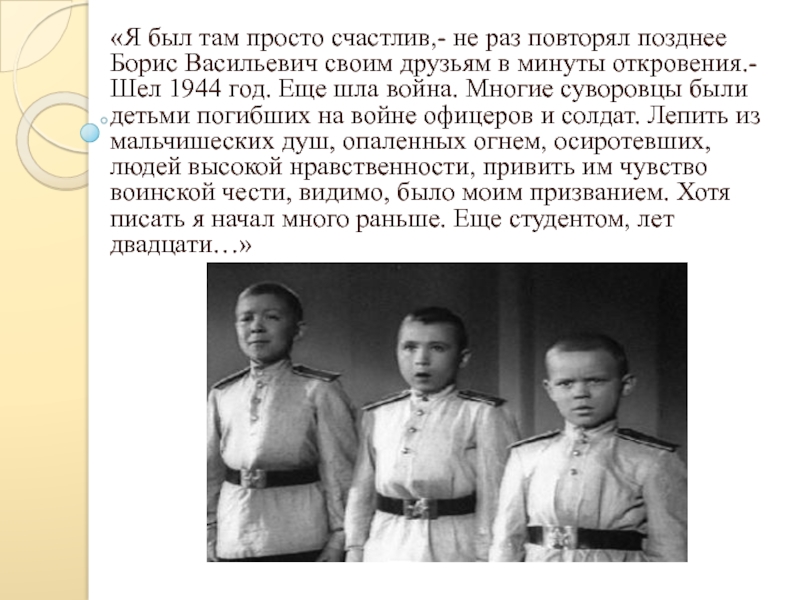 Слайд 8«Я был там просто счастлив,- не раз повторял позднее Борис Васильевич