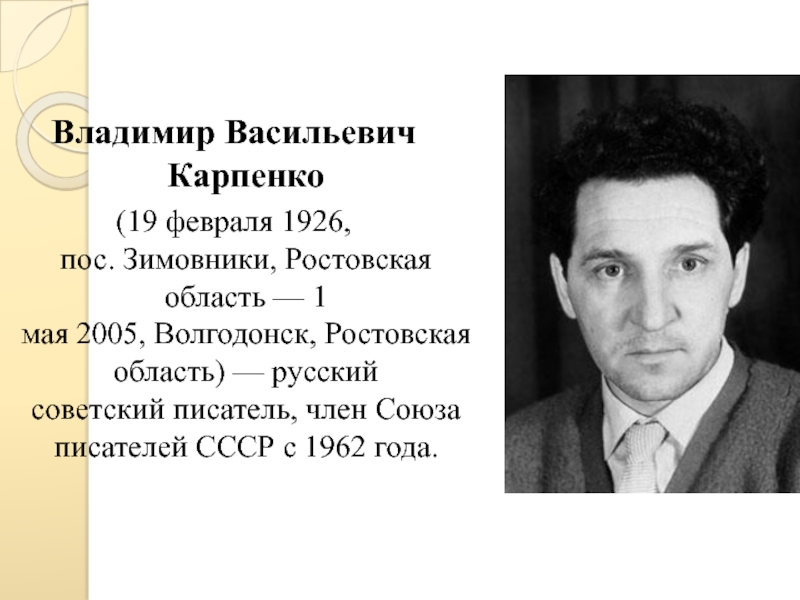 (19 февраля 1926, пос. Зимовники, Ростовская область — 1 мая 2005, Волгодонск, Ростовская область) — русский советский писатель, член Союза