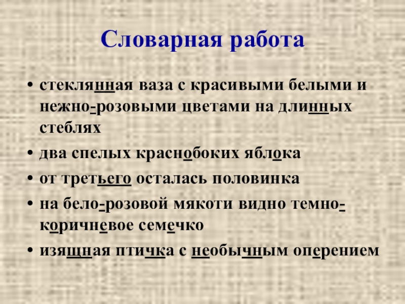 Словарная работастеклянная ваза с красивыми белыми и нежно-розовыми цветами на длинных стеблях два спелых краснобоких яблока от