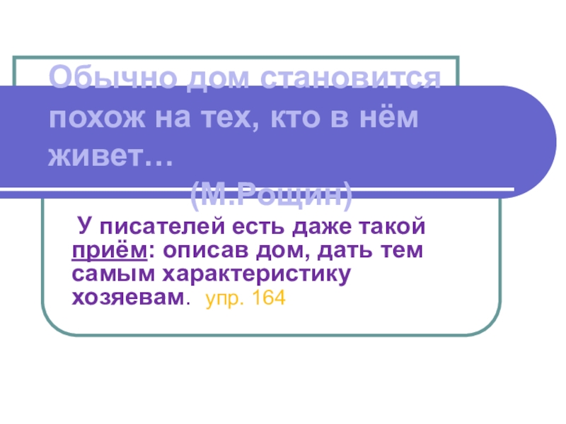 У писателей есть даже такой приём: описав дом, дать тем самым характеристику хозяевам. упр. 164