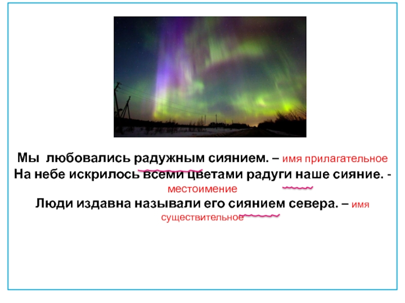 На небе искрилось всеми цветами радуги наше сияние. - местоимение