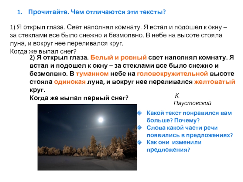 2) Я открыл глаза. Белый и ровный свет наполнял комнату. Я встал и подошел к окну – за стеклами все было снежно и безмолвно. В туманном небе на головокружительной высоте стояла одинокая луна, и вокруг нее переливался желтоватый круг.
