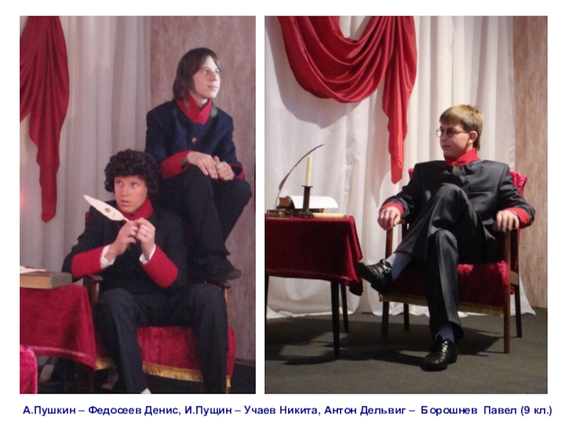 Слайд 32 А.Пушкин – Федосеев Денис, И.Пущин – Учаев Никита, Антон Дельвиг