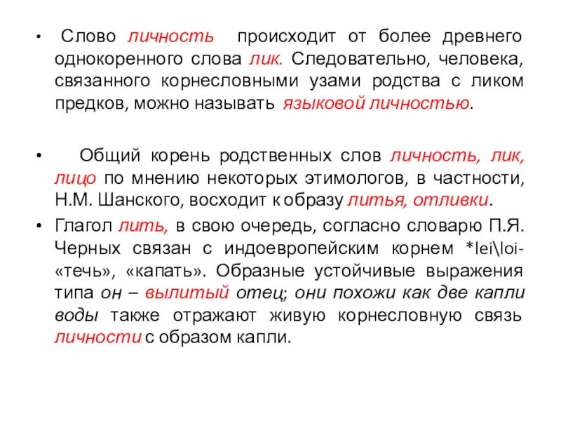 Слайд 30 Слово личность происходит от более древнего однокоренного слова лик. Следовательно,