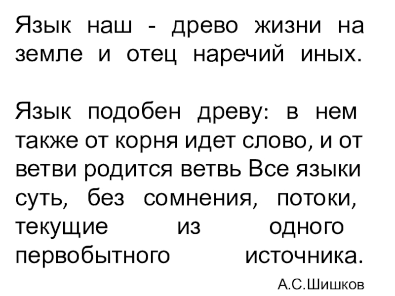 Слайд 3Язык наш - древо жизни на земле и отец наречий иных.