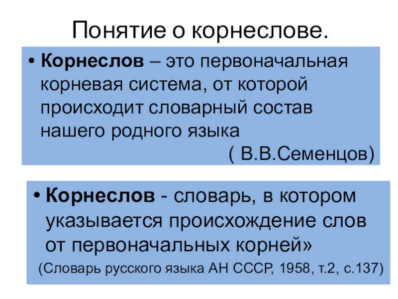 Корнеслов - словарь, в котором указывается происхождение слов от первоначальных корней»