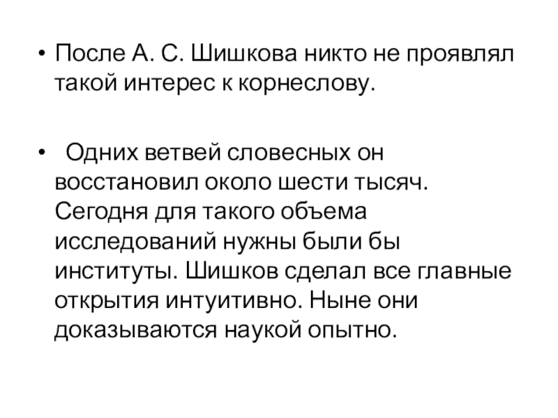 Слайд 4После А. С. Шишкова никто не проявлял такой интерес к корнеслову.