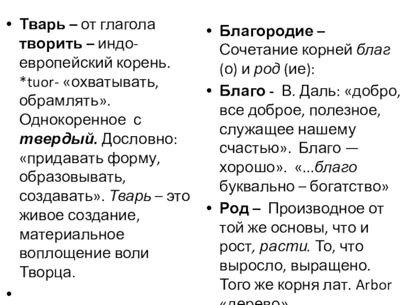 Слайд 17Тварь – от глагола творить – индо-европейский корень. *tuor- «охватывать, обрамлять».