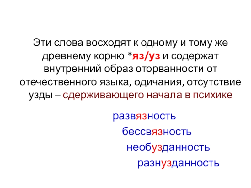 Слайд 29Эти слова восходят к одному и тому же древнему корню *яз/уз