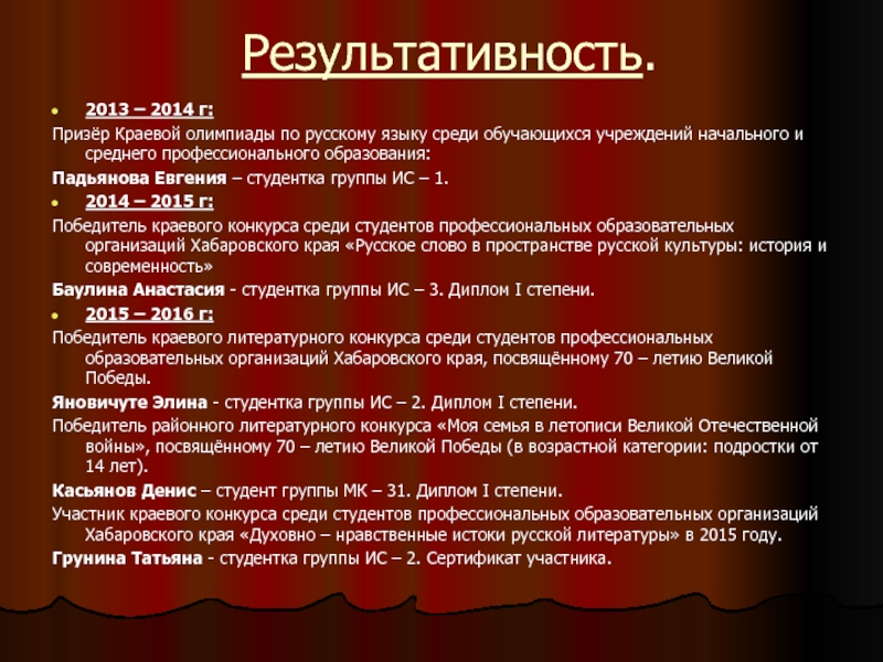 яли на последующее творчес-