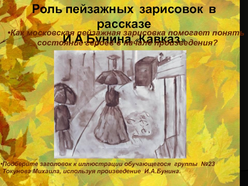 Подберите заголовок к иллюстрации обучающегося группы №23 Токунова Михаила, используя произведение И.А.Бунина.