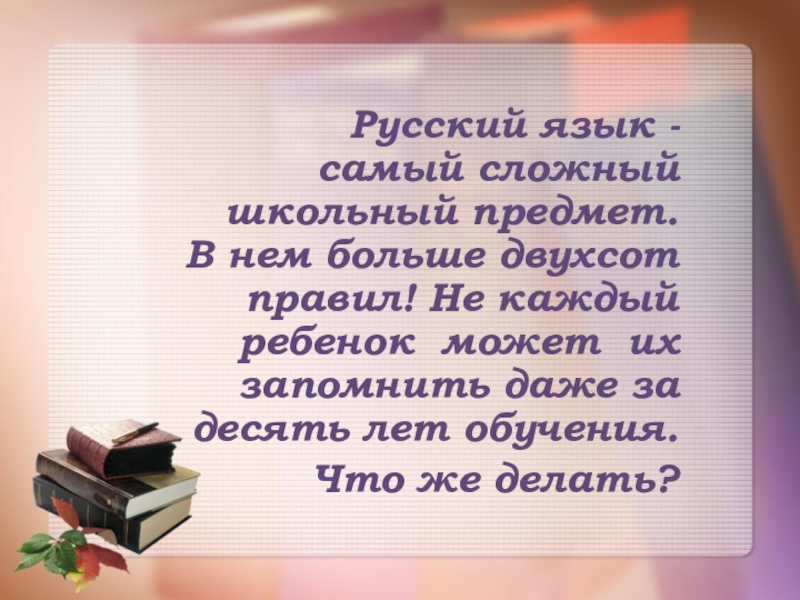 предмет. В нем больше двухсот правил! Не каждый ребенок может их запомнить даже за десять лет обучения.