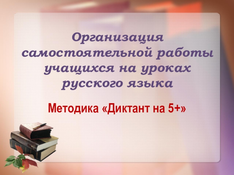 Организация самостоятельной работы учащихся на уроках русского языкаМетодика «Диктант на 5+»