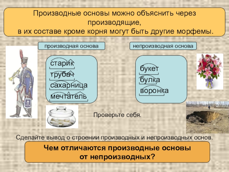 Производные основы можно объяснить через производящие,