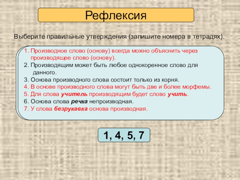 Выберите правильные утверждения (запишите номера в тетрадях).