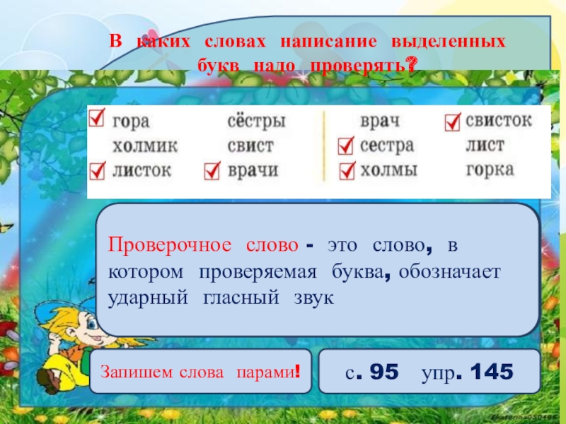 Проверяемое слово - это слово, в котором проверяется написание буквы, обозначающей безударный гласный звук