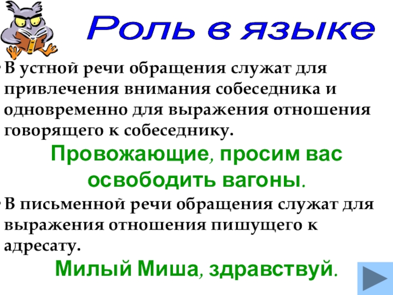Роль в языке