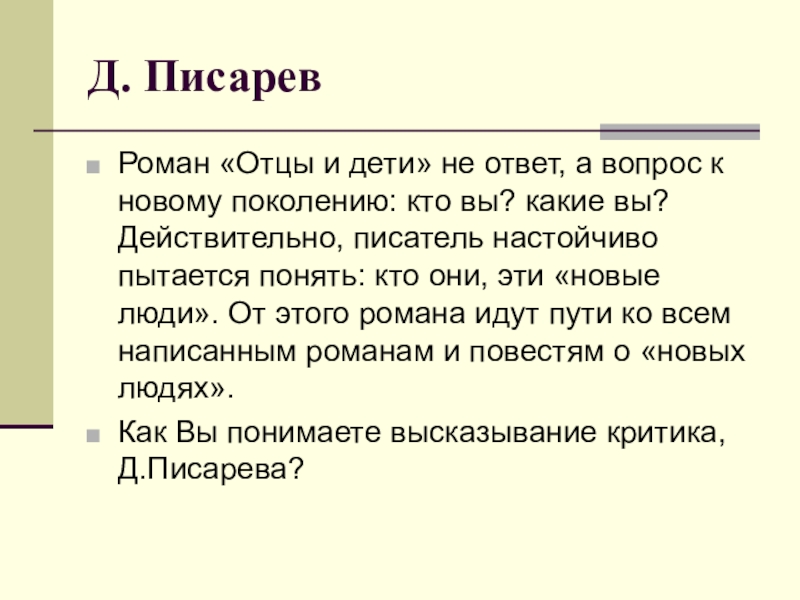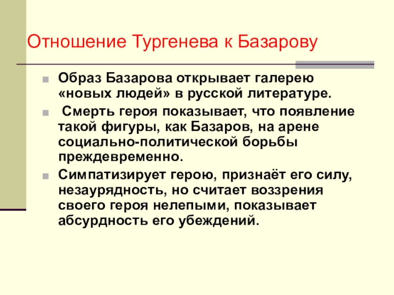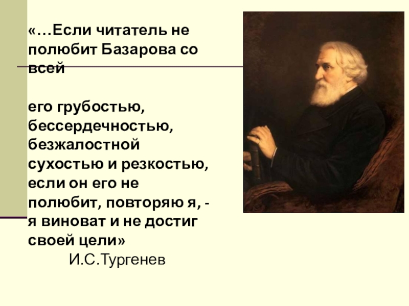 Слайд 40«…Если читатель не полюбит Базарова со всей