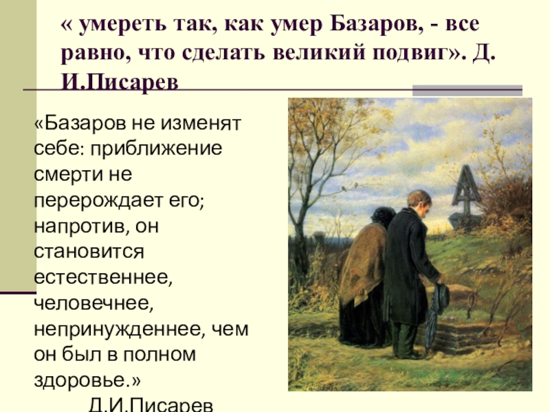 Слайд 43« умереть так, как умер Базаров, - все равно, что сделать