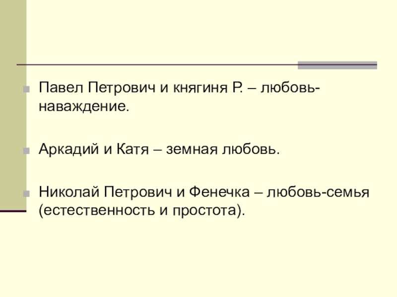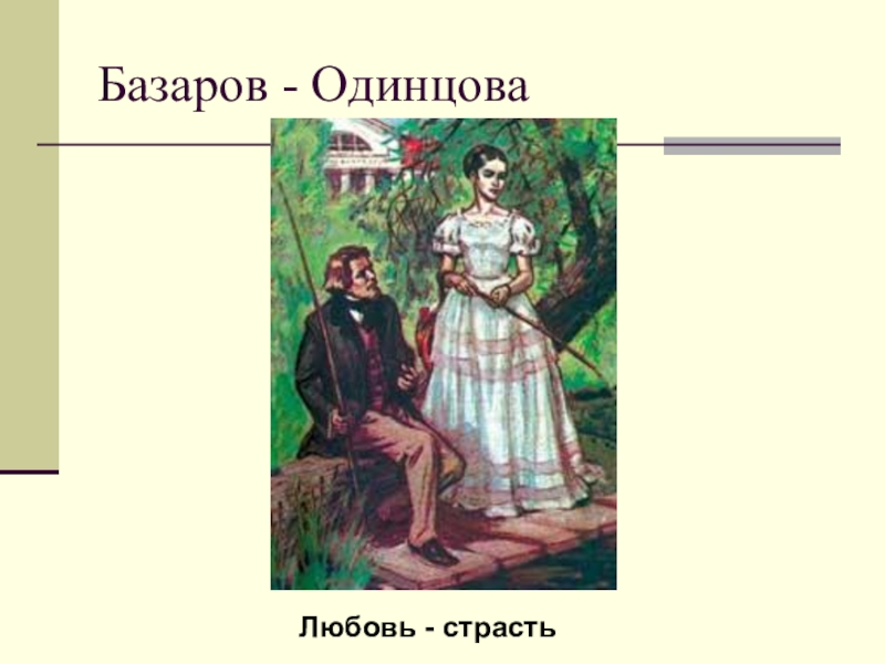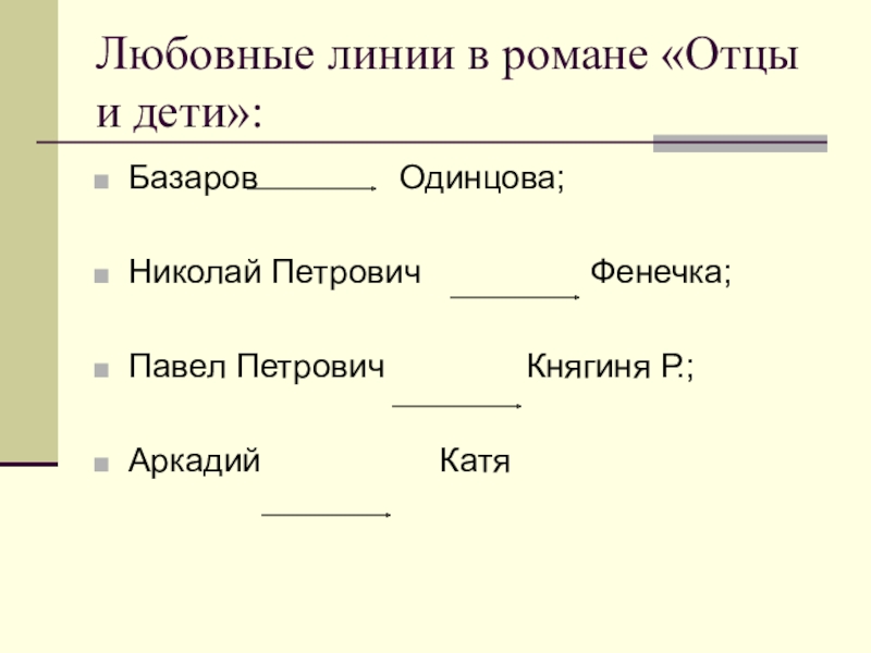 Слайд 27Любовные линии в романе «Отцы и дети»: