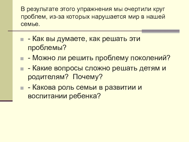 Слайд 14В результате этого упражнения мы очертили круг проблем, из-за которых нарушается