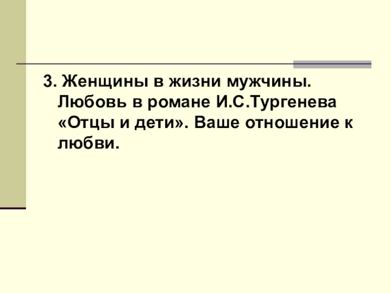3. Женщины в жизни мужчины. Любовь в романе И.С.Тургенева «Отцы и дети». Ваше отношение к любви.