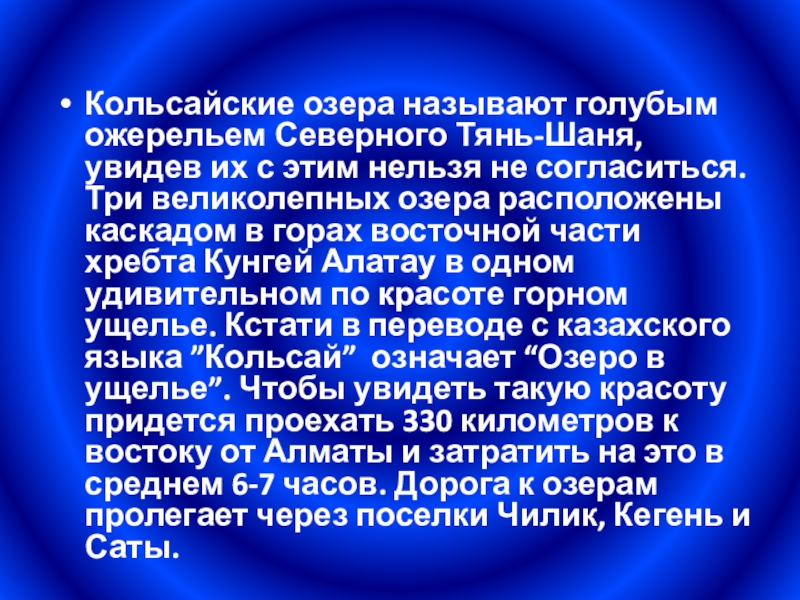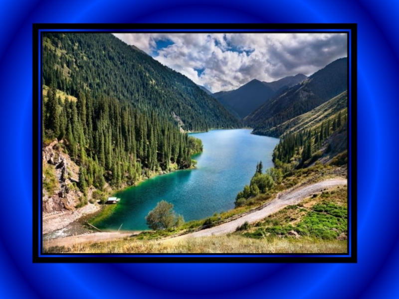 Слайд 2Кольсайские озера называют голубым ожерельем Северного Тянь-Шаня, увидев их с этим нельзя