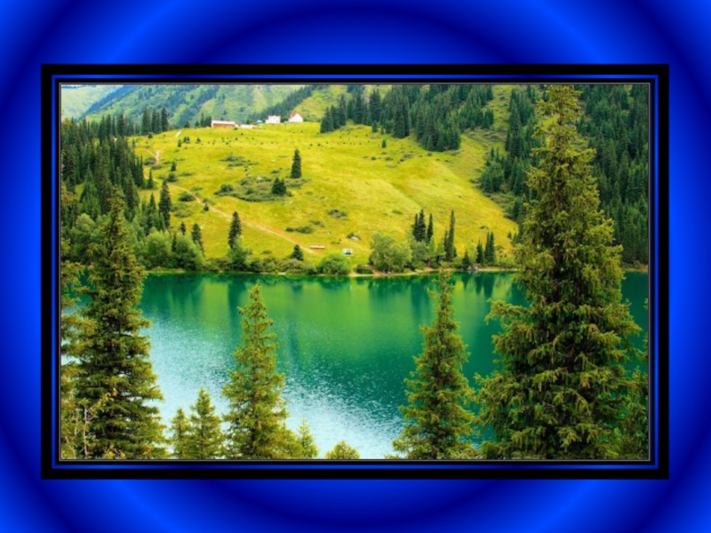 Слайд 25 Недалеко от Кольсайских озер среди великолепного хвойного леса раскинулось еще одно