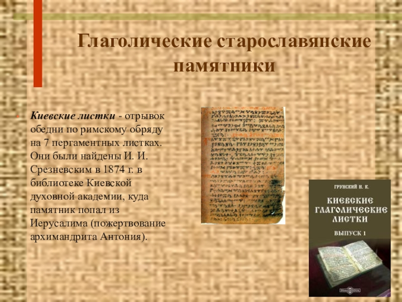 Слайд 1Памятники письменности на старославянском языке