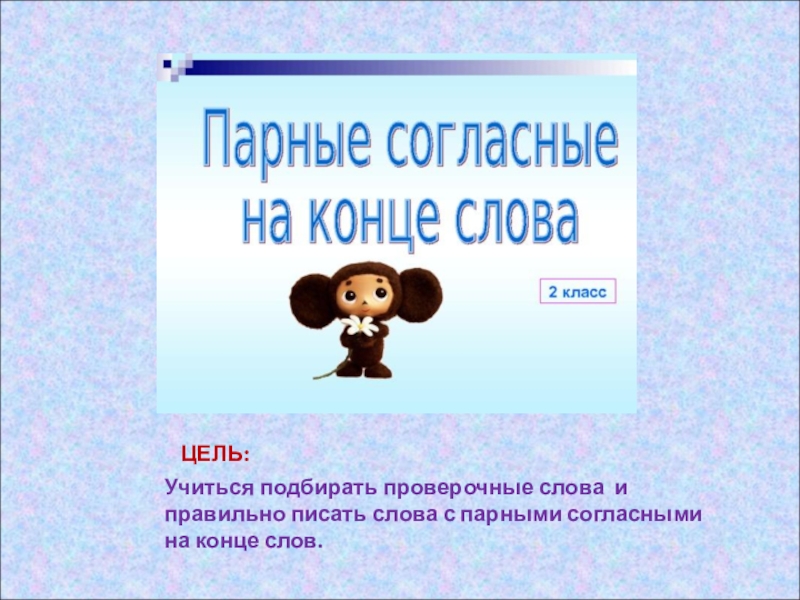 ЦЕЛЬ:Учиться подбирать проверочные слова и правильно писать слова с парными согласными на конце слов.