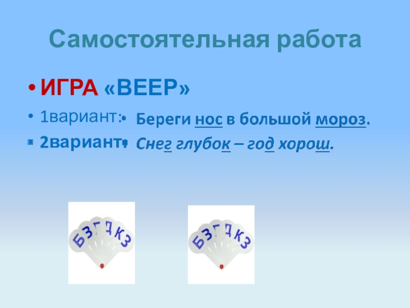 Самостоятельная работаИГРА «ВЕЕР»1вариант:2вариант:
