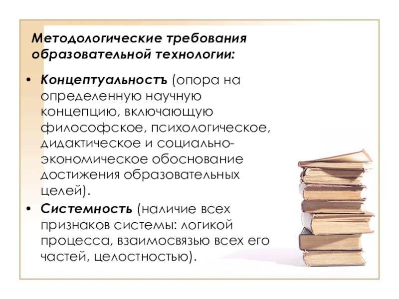 Слайд 23Методологические требования образовательной технологии: