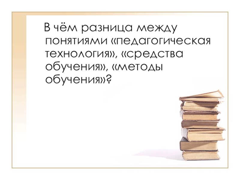 Слайд 27 В чём разница между понятиями «педагогическая технология», «средства обучения»,