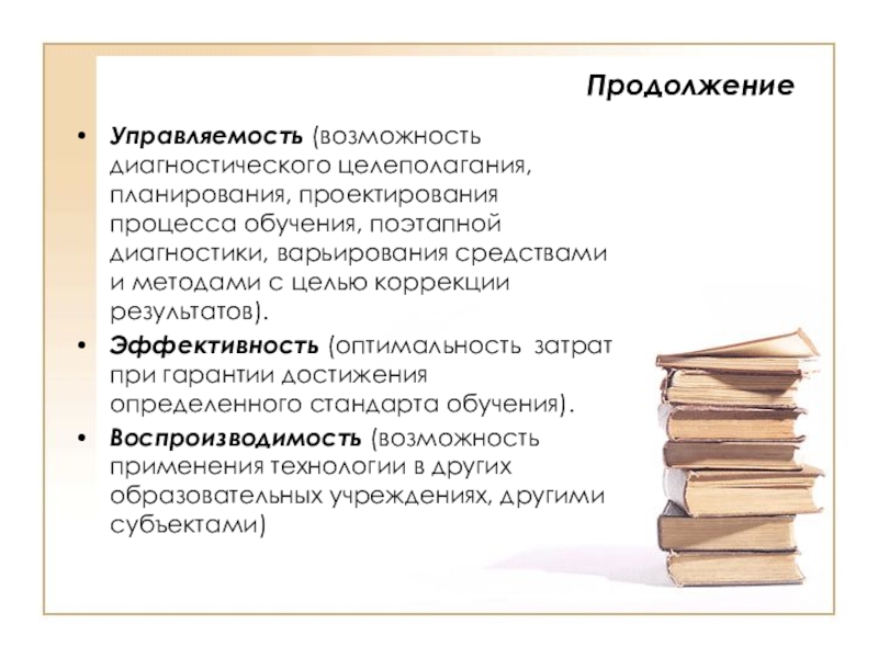 Управляемость (возможность диагностического целеполагания, планирования, проектирования процесса обучения, поэтапной диагностики, варьирования